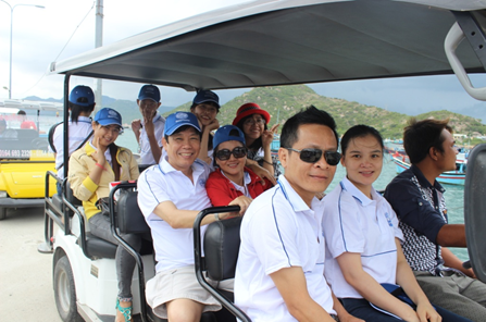Xe điện - cải tiến chuyên dùng để phục vụ cho khách du lịch đưa đoàn đi tham quan xung quanh đảo khám phá những thắng cảnh về biển đảo thật đẹp, làm hài lòng du khách. Các thành viên trong đoàn cùng hòa mình vào với làn nước mát tại Bãi Nồm – Một bãi tắm nước trong xanh, sạch, nhìn tận đáy biển, không có sóng biển ồn ào - êm đềm như trong hồ bơi (đúng theo nghĩa “Bình Ba”), du khách tắm biển nơi này, nghỉ dưỡng, thưởng thức đặc sản tôm hùm thật hấp dẫn…chắc chắn không thể nào quên những ấn tượng đẹp về du lịch biển đảo Việt nam.