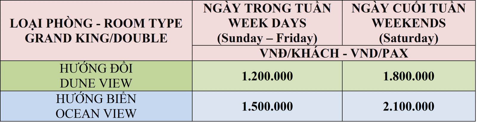 · Giường phụ cho trẻ em (7-11 tuổi): VND 1.200,000/đêm, bao gồm ăn sáng.