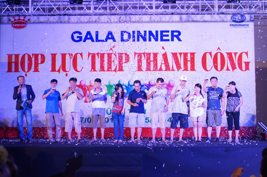 Buổi tối thêm sôi động và gắn kết với chương trình “Gala dinner” đầy ấn tượng của những trò chơi và màn giao lưu văn nghệ. Các màn múa của những nghệ sĩ “chuyên nghiệp” cho đến các tiết mục “hát với nhau” của anh chị em công nhân Kinh Đô đã góp phần làm nên bầu không khí đầm ấm, rộn ràng tiếng cười và tràn ngập niểm vui.