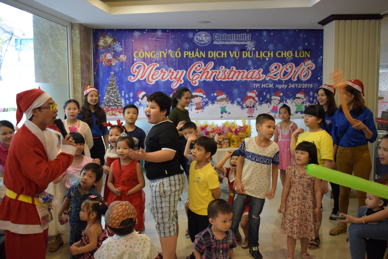 Giáng sinh là thời điểm con người bày tỏ sự yêu thương, quan tâm, chia sẽ và thấu hiểu nhau. Chính vì vậy, vào ngày 24/12/2016 Đoàn Thanh niên Cholontourist tổ chức Chương trình Giáng sinh an lành và ấm áp cho con em của cán bộ, nhân viên, người lao động Cholontourist.