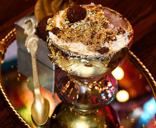 Kem socola được tạo thành từ hỗn hợp 28 loại bột cacao, trang trí bằng vàng ăn được, thậm chí đựng trong một chiếc cốc có nhiều lớp vàng ăn được phía dưới. Một nửa cacao dùng làm kem là những loại đắt nhất thế giới. Kem có giá 25.000 USD (555 triệu đồng). Địa chỉ thưởng thức là nhà hàng Serendility 3, New York, Mỹ.
