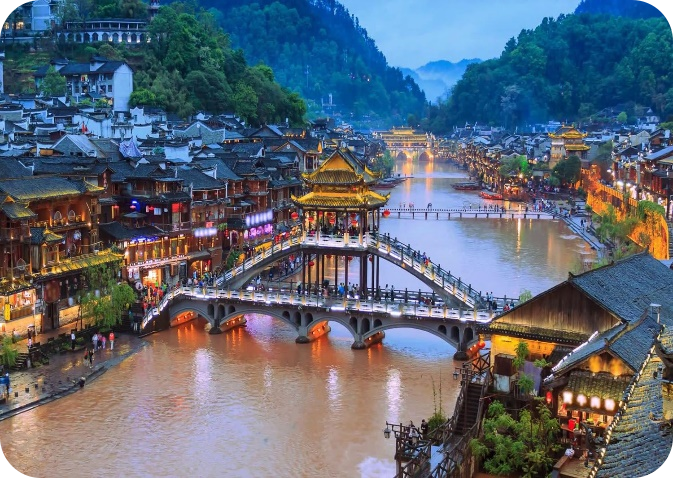 Sáng : Đoàn dùng điểm tâm sáng tại khách sạn, trả phòng và di chuyển tham quan Phượng Hoàng Cổ Trấn