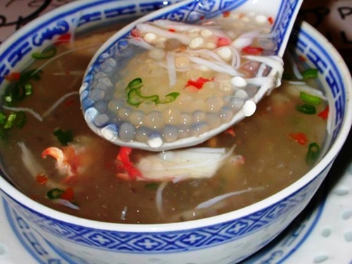 Chiều chiều, bạn có thể thưởng thức một bát canh bột báng của những người bán rong cho ấm bụng.