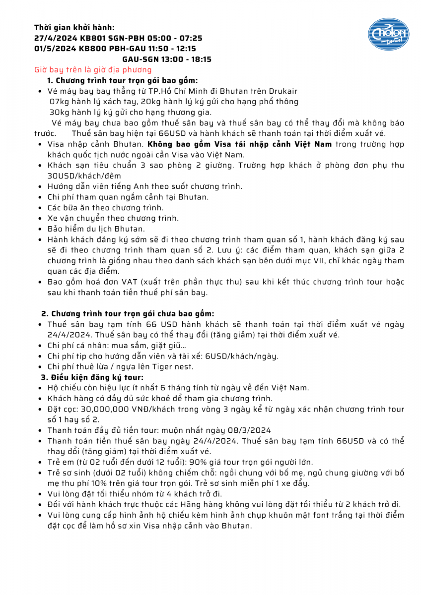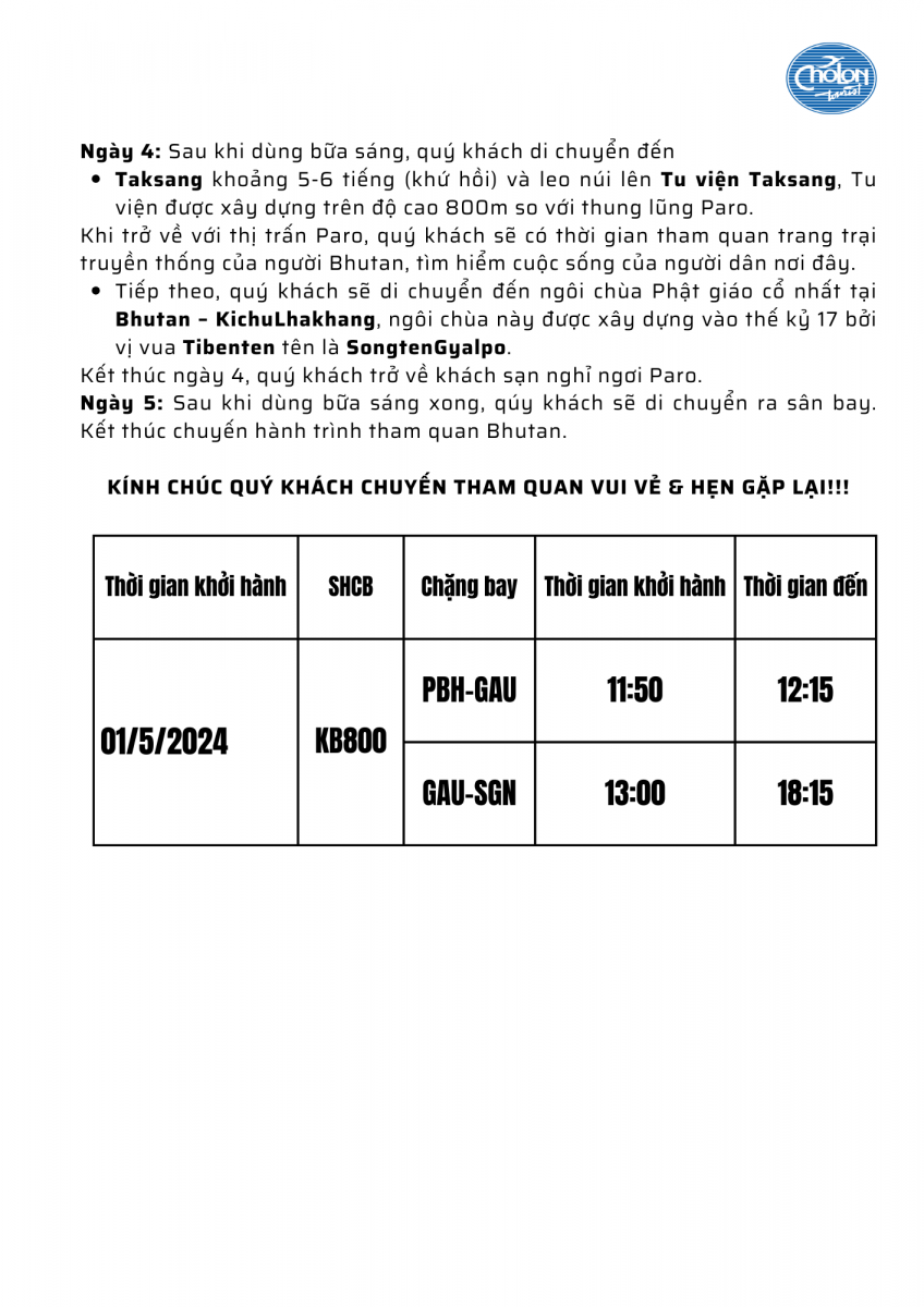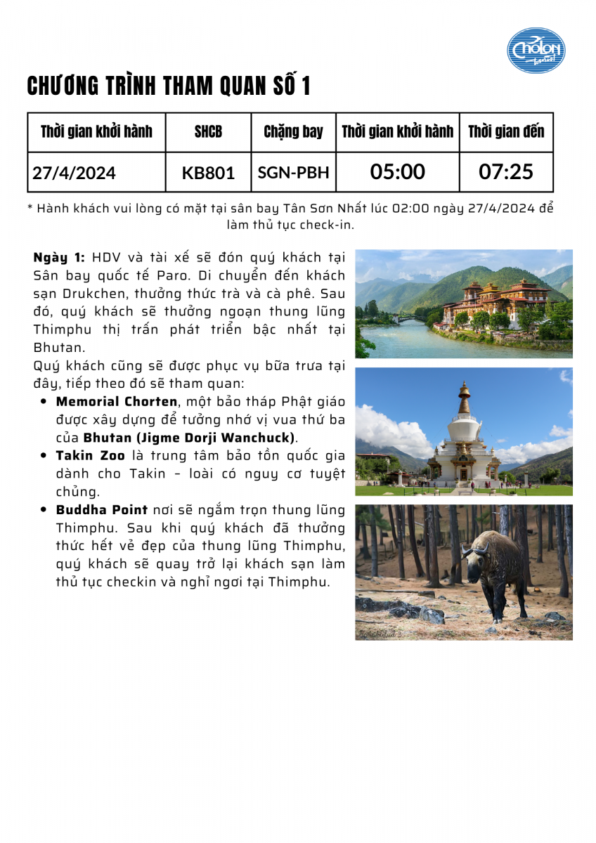 CHƯƠNG TRÌNH TOUR BHUTAN 2024