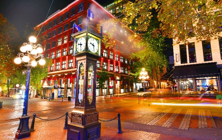 · Gastown Đây là khu vực độc đáo và cổ kính nhất thành phố, được bao quanh bởi rất nhiều quán bar, nhà hàng và câu lạc bộ cho bạn tha hồ lựa chọn. Đây cũng là nơi đặt bức tượng ông Gassy Jack, người chủ của một quán rượu được xây dựng vào cuối thế kỷ 19 ngay cạnh khu Gastown - tiền đề tạo nên thành phố Vancouver ngày nay.