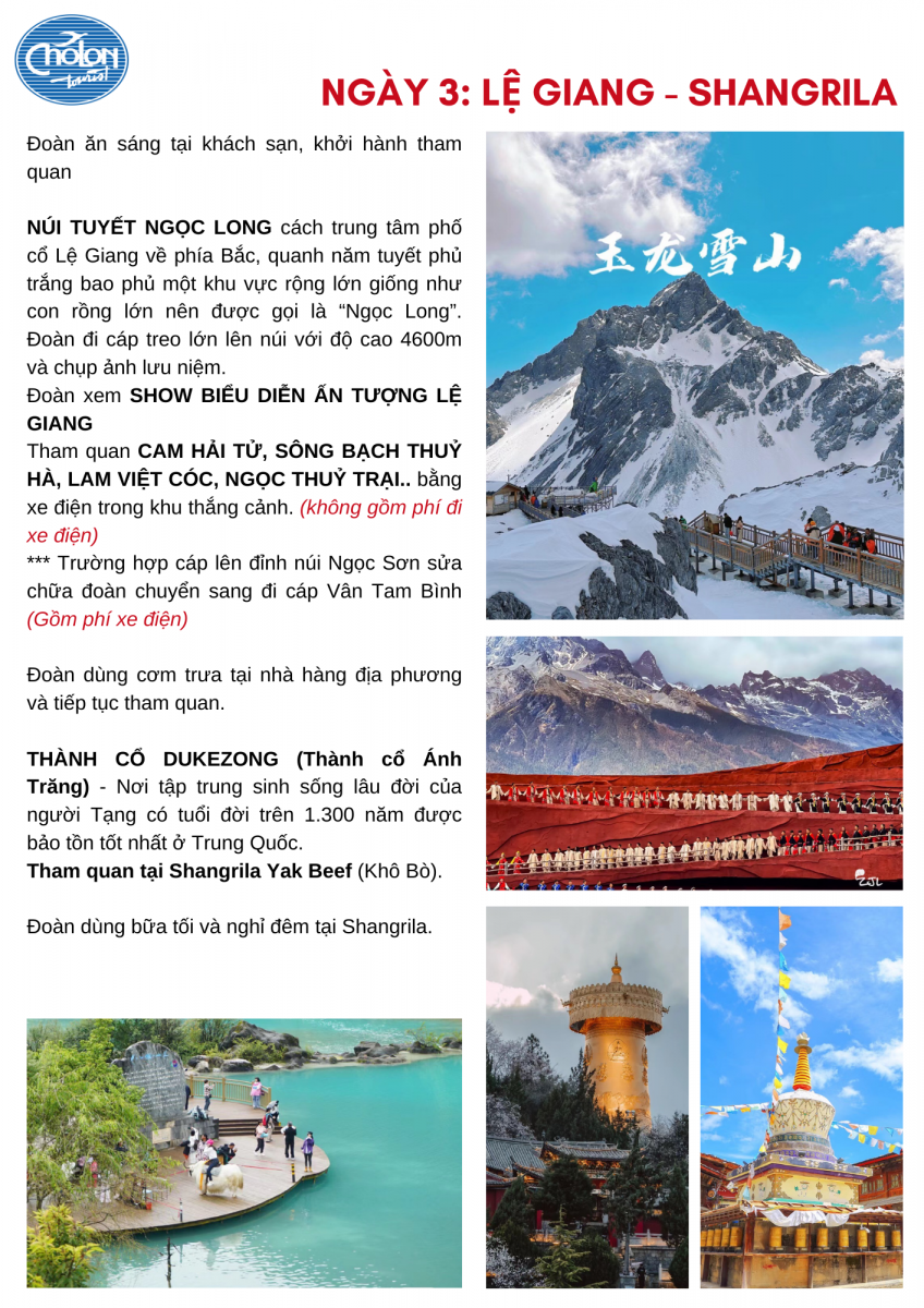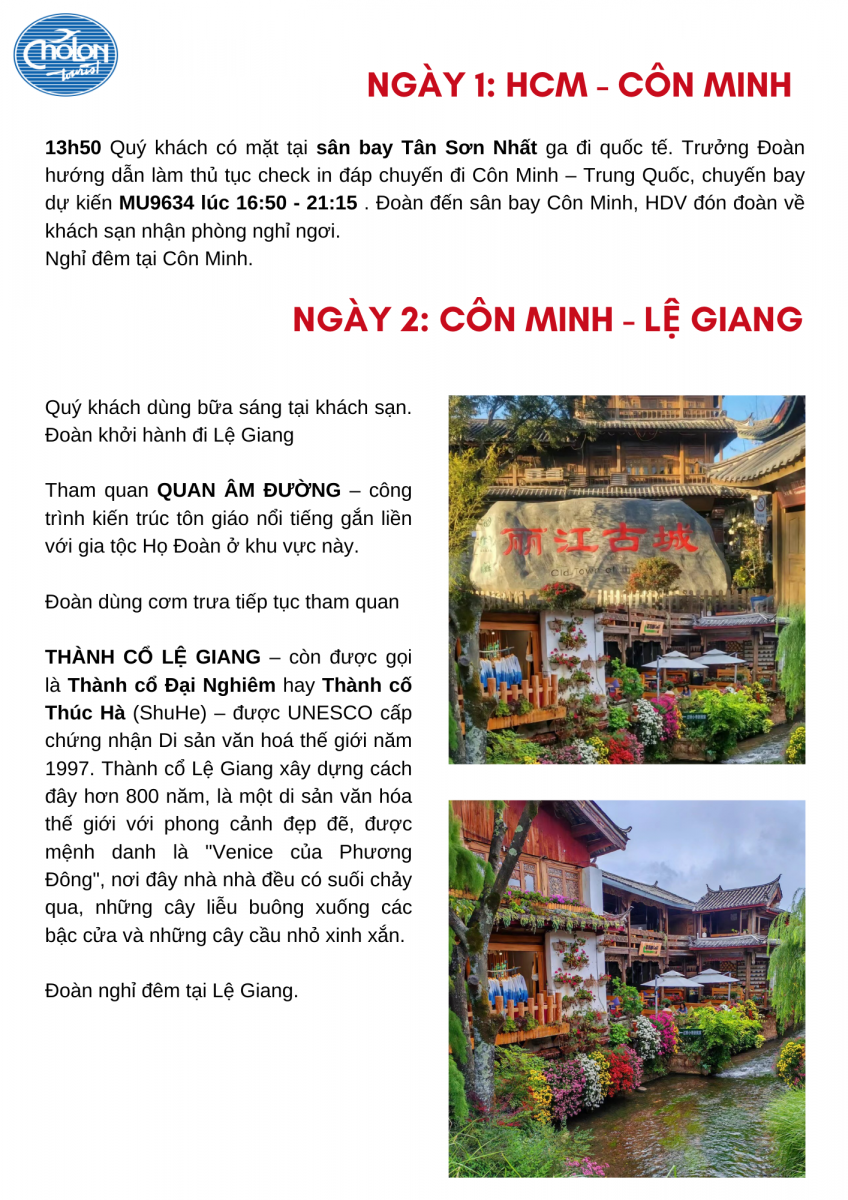 TOUR LỆ GIANG: CÔN MINH - ĐẠI LÝ - LỆ GIANG - SHANGRILA 6N5D