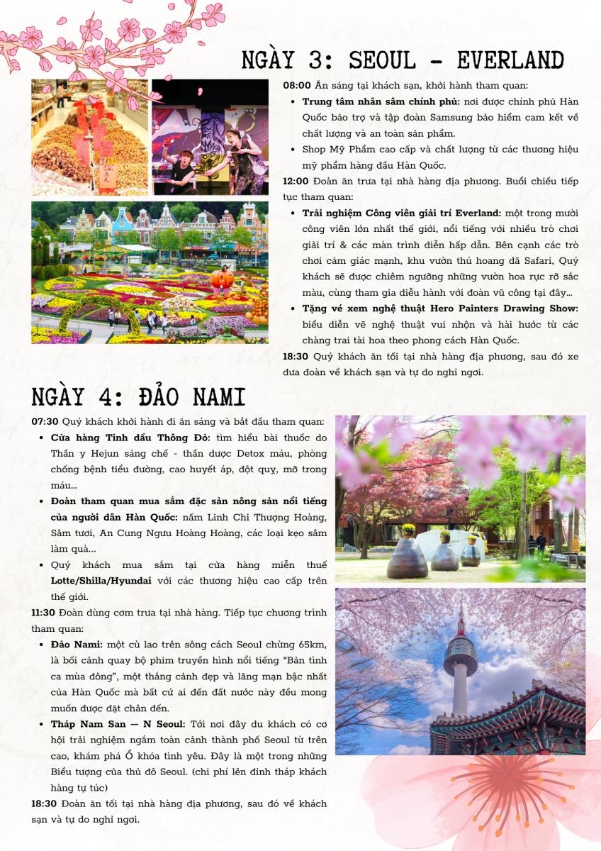 ĐÓN XUÂN HÀN QUỐC MÙA HOA ANH ĐÀO 2024 SEOUL – ĐẢO NAMI – EVERLAND 5N4D