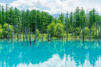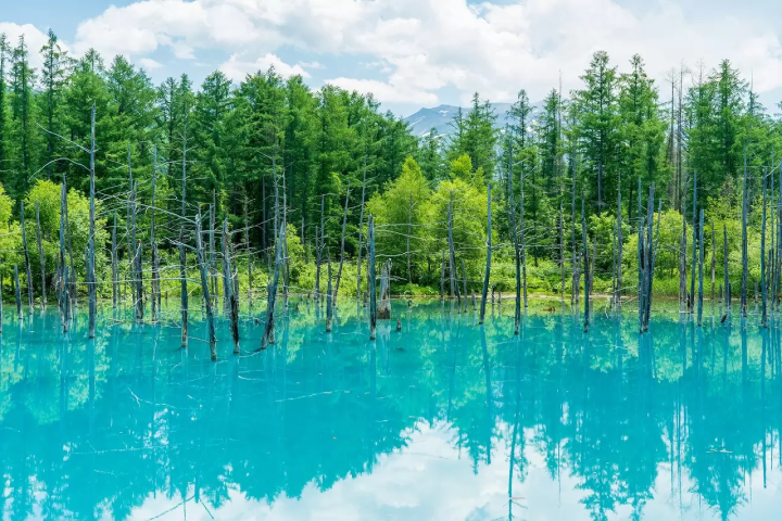 Blue Pond: Hồ Xanh là một sự tình cờ thú vị. Nằm gần thị trấn Biei , hồ nước này được tạo ra để ngăn chặn thiệt hại do dòng chảy bùn từ Núi Tokachi gây ra. Màu sắc của hồ biến đổi từ màu ngọc lam sống động sang màu ngọc bích rồi đến màu xanh coban, hiện tượng này gây ra bởi tạp chất có trong nước chảy xuống từ Thác Shirahige. Tất cả các yếu tố như mùa, cùng với gió, mây và mưa đều có thể làm biến đổi sắc thái của hồ.