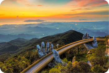 - Chiều: Quý khách thả mình vào không gian tuyệt đẹp như nước Pháp và khí hậu tuyệt vời được ví như Đà Lạt của miền Trung, tham quan vườn hoa, hầm rượu, chùa Linh Ứng, Thích Ca Phật Đài, đặc biệt là chiêm ngưỡng và chụp ảnh Cầu Vàng, cây cầu có kiến trúc độc nhất vô nhị với đôi bàn tay khổng lồ nâng đỡ Cầu Vàng tuyệt đẹp