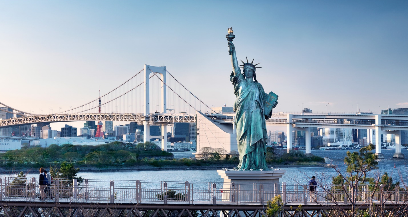 Đảo nhân tạo Odaiba: Đây là công trình “lấp biển” được xây dựng từ thời kỳ Edo, nằm ở vịnh Tokyo nối với trung tâm qua cây cầu Rainbow và nổi tiếng với Tượng Nữ thần Tự do. Quý khách tự do mua sắm tại các shopping mall.