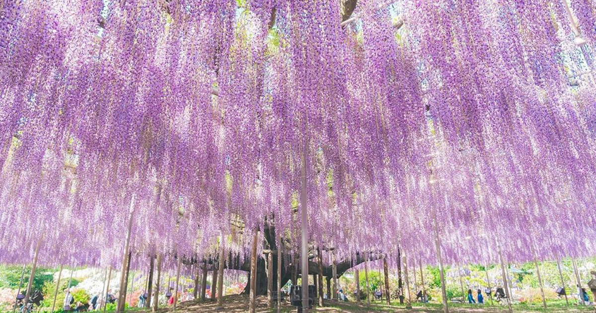 Ngắm hoa tử đằng tại công viên Ashikaga: Trong khu vườn hoa tử đằng rộng 92.000 m2, có khoảng hơn 350 cây hoa tử đằng với nhiều chủng loại, bao gồm cây “Đại Tử đằng” 150 tuổi và hai đường hầm hoa tử đằng trắng và vàng dài 80m. Lễ hội hoa tử đằng tại công viên Ashikaga được chọn là 1 trong 10 điểm đến trong mơ trên Thế giới bởi CNN.