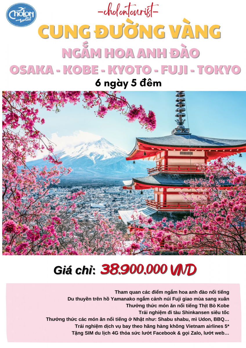 TOUR NHẬT BẢN NGẮM HOA ANH ĐÀO 2024 OSAKA - KOBE - KYOTO - FUJI - TOKYO 6N5D