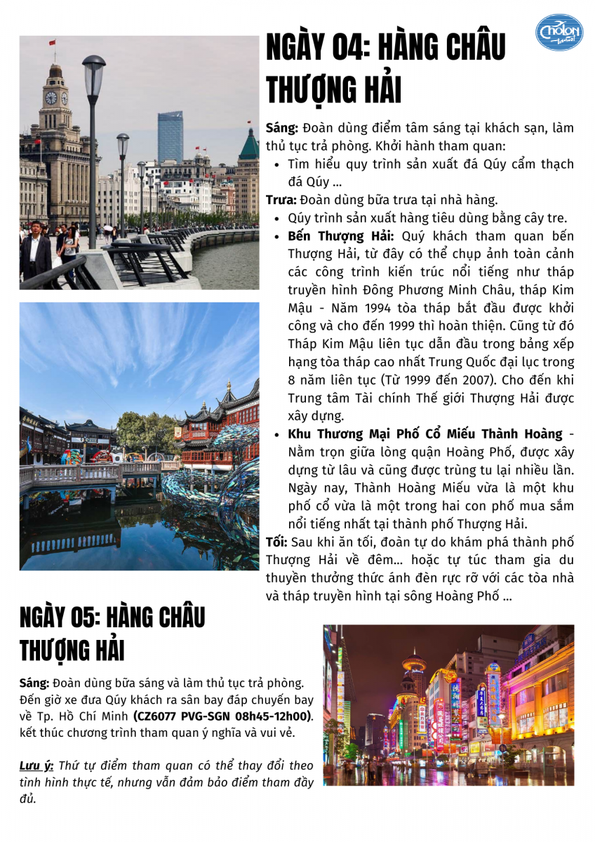 TOUR THƯỢNG HẢI - HÀNG CHÂU - TÔ CHÂU - PHỐ CỔ TÂY ĐƯỜNG 5N4D