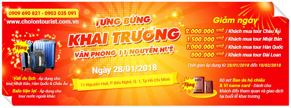 Cholontourist có chương trình khuyến mãi áp dụng cho khách hàng mua tour trong thời gian từ 28/01/2018 đến 10/02/2018 như sau: